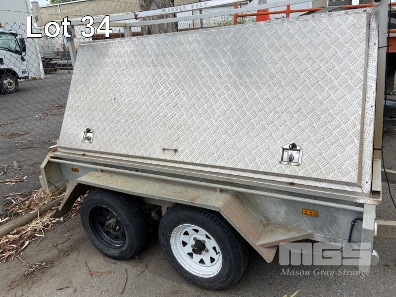 2014 ABLE TRAILERS TANDEM ENCLOSED BOX TRAILER REG: S919 TFX VIN / CHASSIS: 6NCBOXTOPEM000849 GALV STEEL WITH ALLOY CHECKER PLATE DROP IN TRADE PACK LIFT UP SIDES, BRAKES