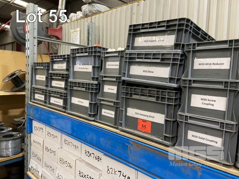 21 x TUBS OF PVC CONDUIT FITTINGS TEES, ELBOWS, BENDS, REDUCERS, ETC.