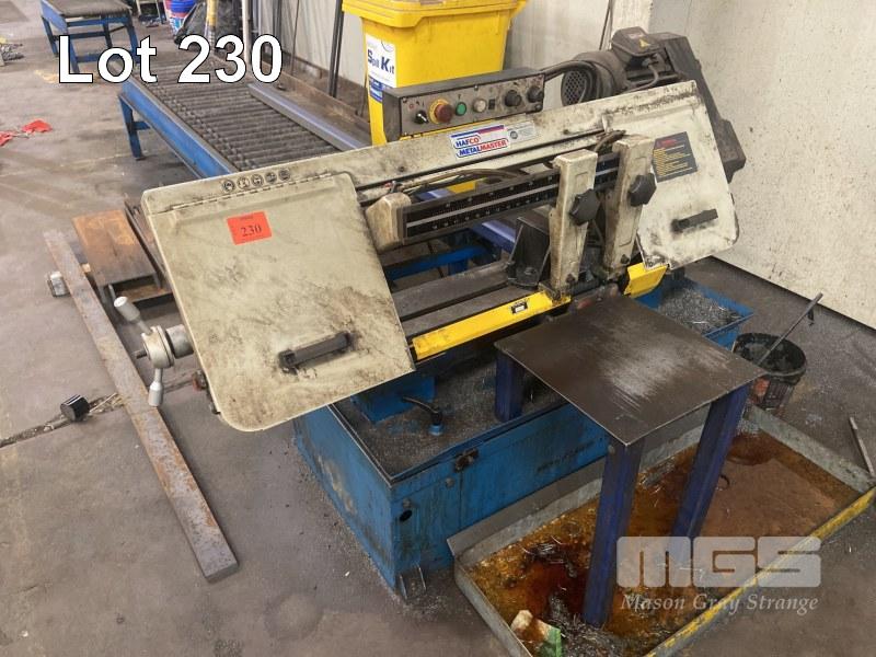 HORIZONTAL BANDSAW, HAFCO METALMASTER 450mm, 45 DEG SWIVEL HEAD SEMI AUTO WITH IN/OUT FEED ROLLER