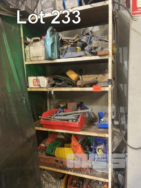 STEEL RACK, 6 TIER AND CONTENTS 2200 H x 900 W x 490 D ASSORTED HARDWARE, RATCHET STRAPS THREADED RODS & MORE