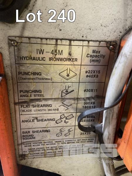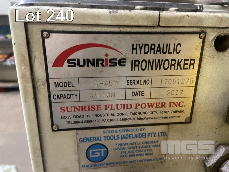 45T SUNRISE HYDRAULIC PUNCH & SHEAR MOD: IW-45M DOM: 2017 SERIAL: 17051278 CUT TO LENTH GAUGE INFEED ROLLERS & SETS OF PUNCHES, 415V