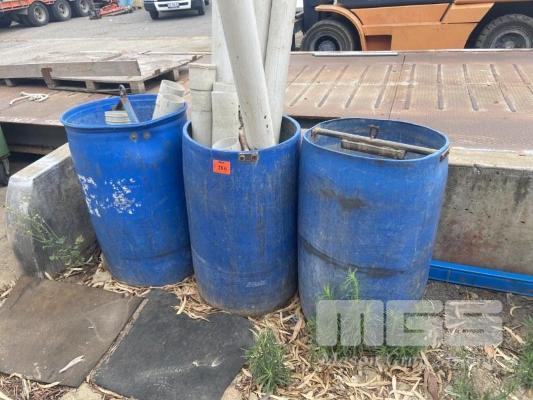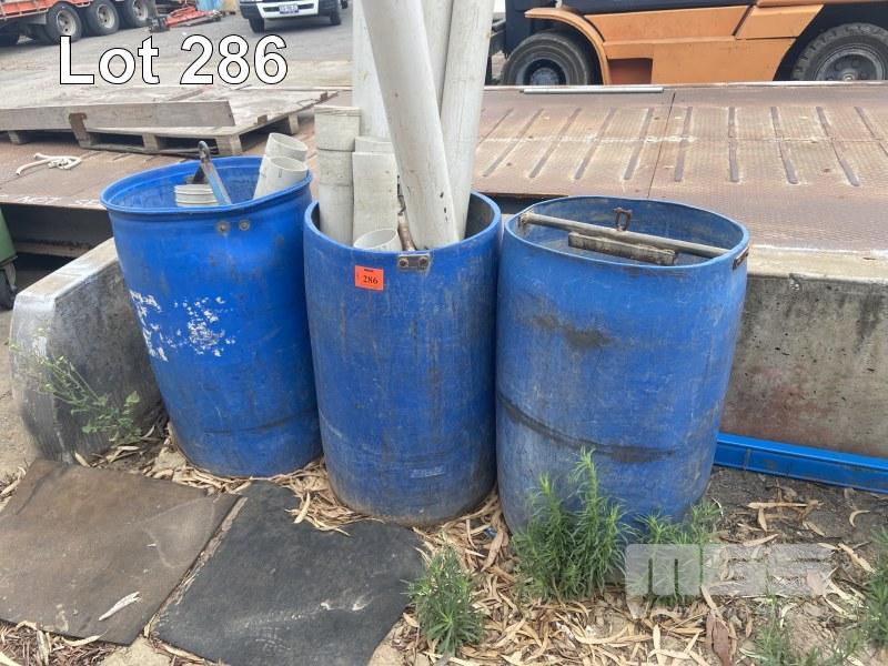 3 x BLUE 200 LITRE DRUMS & PVC FITTINGS
