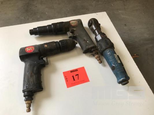 3 X PNEUMATIC TOOLS, DRILL, DRIVER, ANGLE WRENCH