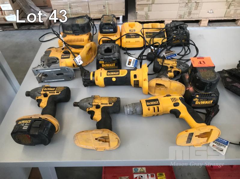 6 X DEWALT CORDLESS POWER TOOLS, 6 X BATTERY CHARGERS & 4 X BATTERIES
