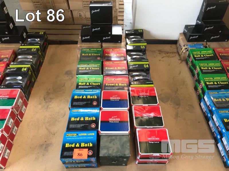 ASSORTED DOOR FURNISHINGS & HARDWARE INC 6 X FIGHTER BED & BATH SETS, 6 X HALL & CLOSET, 6 X FRONT & BACK SETS 6 X GAINSBOROUGH G4 SETS, 4 X PRIVACY, 6 X PASSAGE & MORE