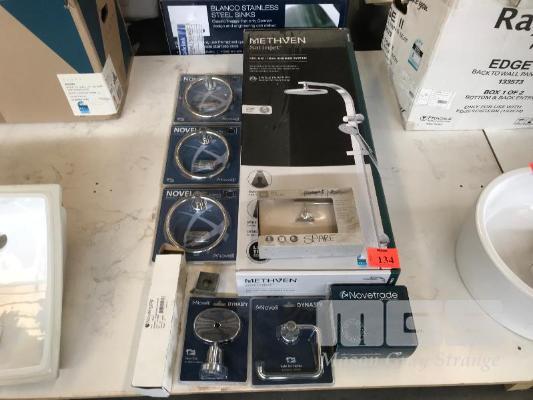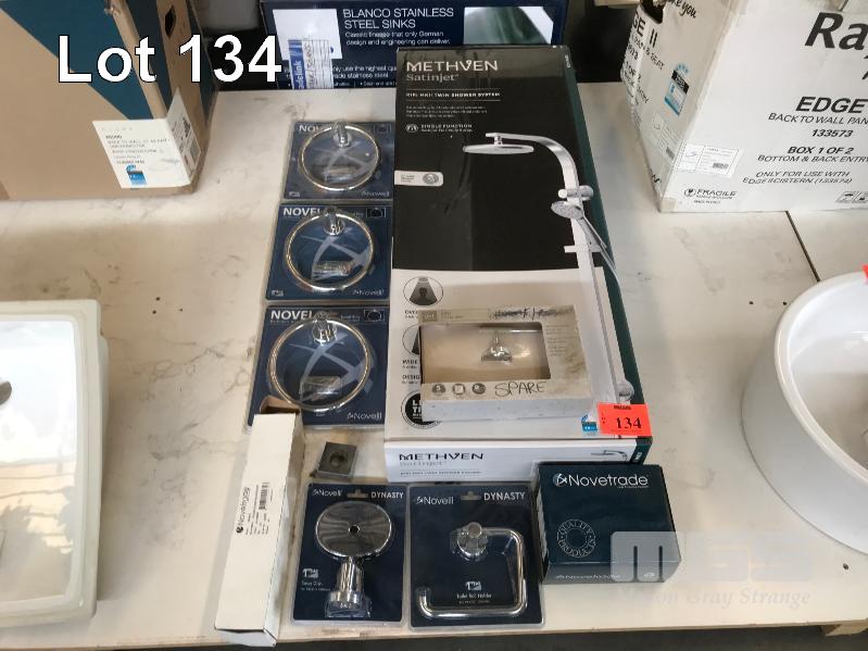ASSORTED BATHROOM WARE METHVEN KIRI MKII TWIN SHOWER SYSTEM, 3 X TOWEL RINGS, SOAP HOLDER, TOILET ROLL HOLDER ETC