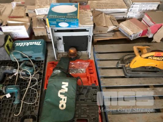 FUSE CABINET ENCLOSURE, 2 X EMPTY POWER TOOL CASES CHAINSAW BAG, ROTATING AMBER LIGHT, OYSTER LIGHT ETC