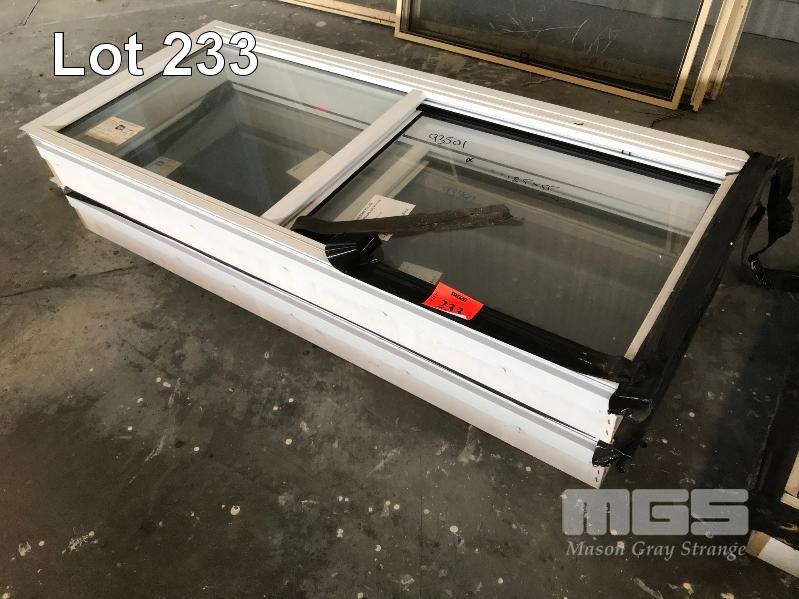 2 X WHITE ALUMINIUM FRAMED CLEAR GLASS SLIDING WINDOWS