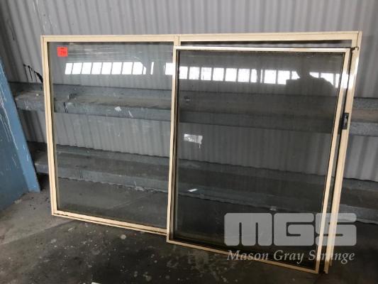BEIGE ALUMINIUM FRAMED SLIDING WINDOW