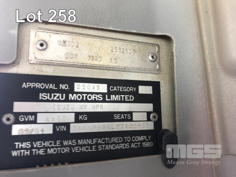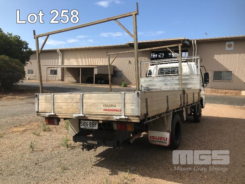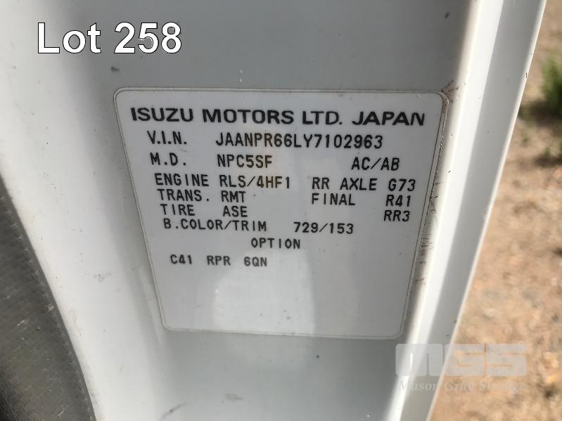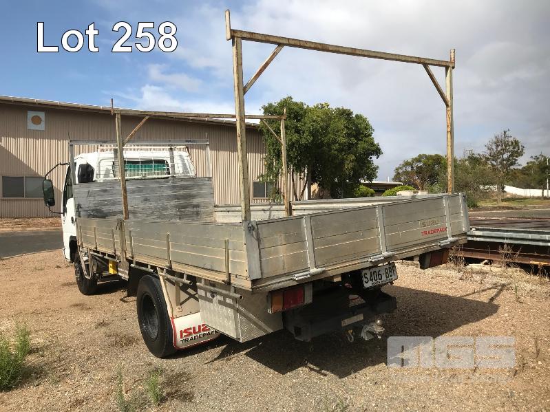 2009 ISUZU 200 NY NPR TRAY TOP TRUCK REG: S406 BBF (SA) (EXPIRED) VIN: JAANPR66LY7102963 ODO: 375,246 GVM: 4490 KG GCM: 7990 KG LENGTH: 4.8 MTR TRAY 5.2 LTR 4 CYLINDER, 5 SPEED MANUAL, DIESEL, WHITE, 2 DOORS, 3 SEAT, AIR CON, ALLOY TRAY, STEEL RIMS, STEEL LOAD RACKS (WITH PAPERS, WITH 2 KEY/S, NO OWNER'S MANUAL, NO SERVICE BOOKS)