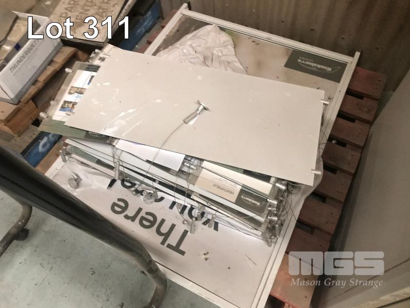 ADVERTISING & PROMOTIONAL ITEMS, WIRE ROPE & PERSPEX PENDANT DISPLAYS & MOBILE SUSPENSION FILE RACK 1 X PALLET