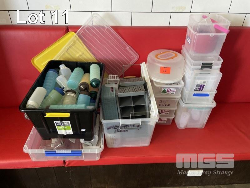 QUANTITY PVC WARE, TUBS, CONTAINERS, SAUCE BOTTLES, ETC
