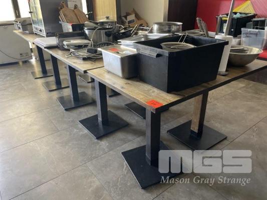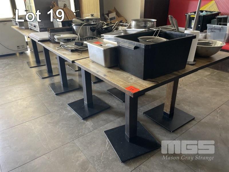 10 x CAFE TABLES, TIMBER TOPPED, 74 x 60cm, BLACK PEDESTAL BASE