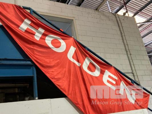 HOLDEN BANNER RED LONG TRIANGLE SHAPE 4.5m LONG APPROX.
