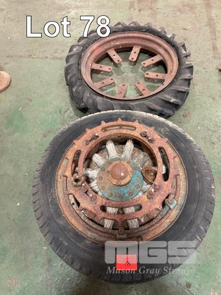 2 x OLD WHEELS, SPOKED, (1 x WOODEN)
