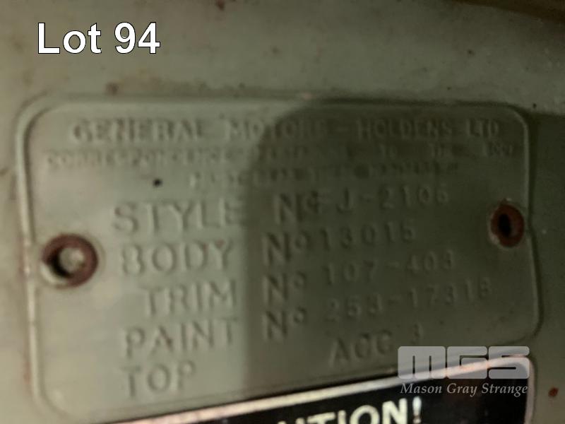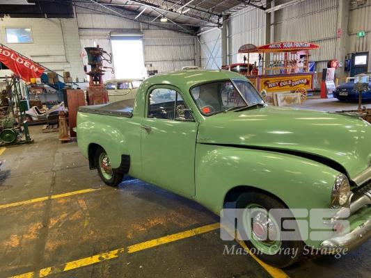 FJ HOLDEN UTE CIRCA 1955 ODO: 82,987miles SHOWING REG: XLV888 STYLE: FJ-2105 BODY No: 13015 6 CYLINDER MANUAL GEARBOX WITH OWNERS HAND BOOK & MANUAL , RADIO. TOW BAR & ASSORTED SPARES . EXCELLENT REAR SOFT COVER. RESPRAYED IN EXCELLENT RUNNING CONDITION