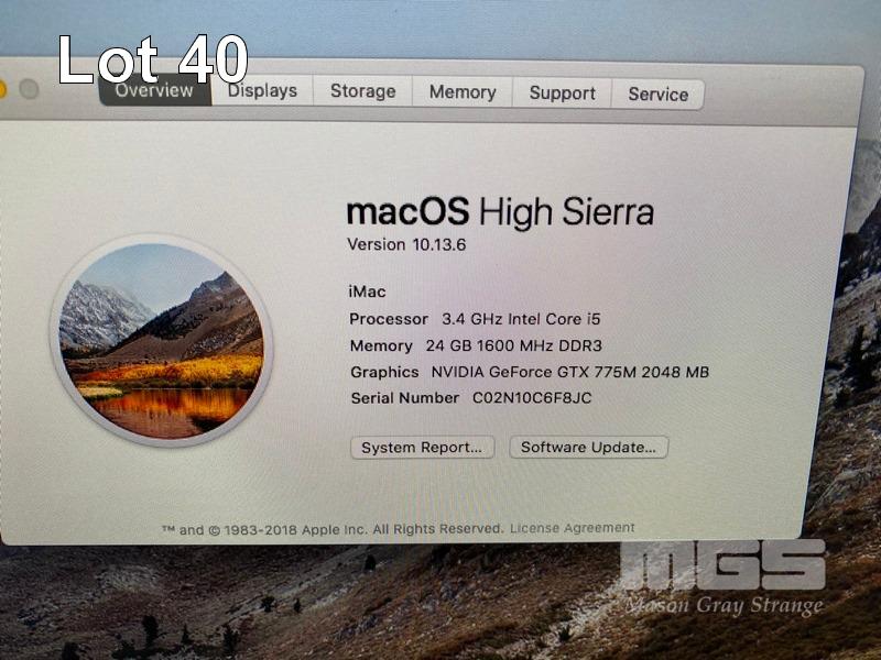 APPLE iMAC (A1419), CORE i5 4670 (4TH GEN) @ 3.4GHz, 24GB DDR3 RAM, 1TB SATA HDD, BUILT-IN 27" DISPLAY (2560x1440), 2GB NVIDIA GEFORCE GTX 776M VIDEO, Wi-Fi, MAC OS 10.13 INSTALLED (NO KEYBOARD, NO MOUSE) S/N:C02N10C6F8JC