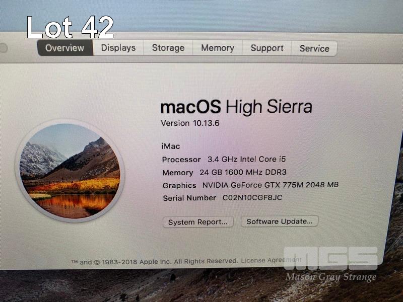 APPLE iMAC (A1419), CORE i5 4670 (4TH GEN) @ 3.4GHz, 24GB DDR3 RAM, 1TB SATA HDD, BUILT-IN 27" DISPLAY (2560x1440), 2GB NVIDIA GEFORCE GTX 776M VIDEO, Wi-Fi, MAC OS 10.13 INSTALLED (NO KEYBOARD, NO MOUSE) S/N:C02N10CGF8JC