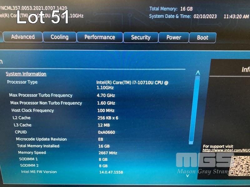 DESKTOP PC, INTEL NUC 10 MINI, NUC10i7FNH, CORE i7 10710U (10TH GEN) @ 1.1GHz, 16GB DDR4 RAM, 500GB M.2 SSD, Wi-Fi, BLUETOOTH, WINDOWS 11 PRO INSTALLED, KEYBOARD, MOUSE & POWER SUPPLY S/N:GEFN00300QMW