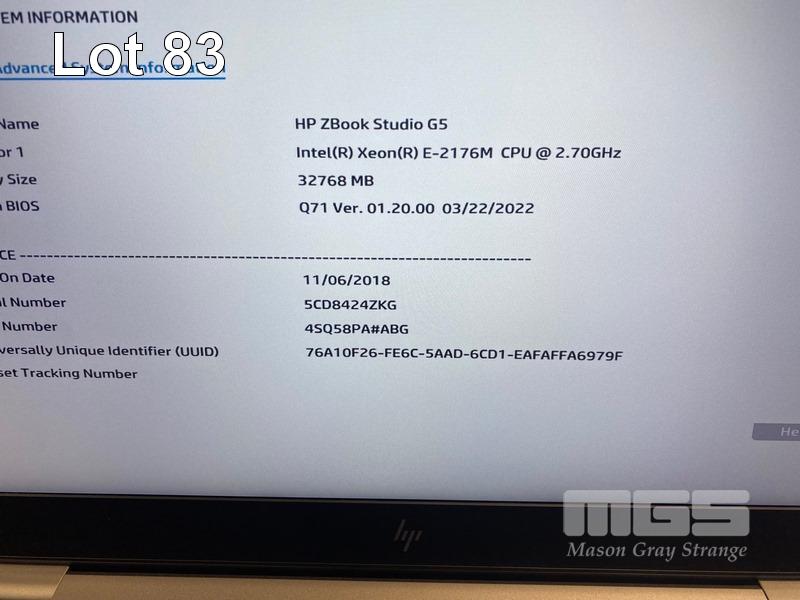 LAPTOP, HP ZBOOK STUDIO G5 MOBILE WORKSTATION (4SQ58PA), XEON E-2176M @ 2.7GHz, 32GB DDR4 RAM, 512GB NVMe M.2 SSD, 15.6" WIDESCREEN (3840x2160), 4GB NVIDIA QUADRO P1000 VIDEO, Wi-Fi, BLUETOOTH, WINDOWS 11 PRO INSTALLED & POWER SUPPLY S/N:5CD8424ZKG