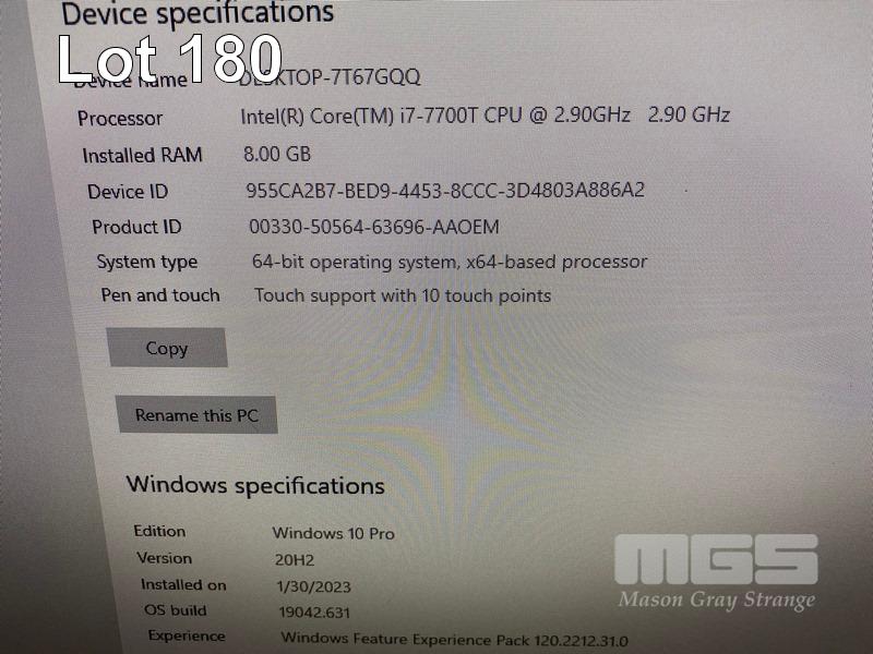 ALL-IN-ONE PC, LENOVO V510z, TYPE 10NJ, CORE i7 7700T (7TH GEN) @ 2.9GHz, 8GB DDR4 RAM, 256GB NVMe M.2 SSD, DVD-RW, INBUILT 23" TOUCHSCREEN (1920x1080), Wi-Fi, WINDOWS 10 PRO INSTALLED & POWER SUPPLY (NO KEYBOARD, NO MOUSE) S/N:MP15R5ZM