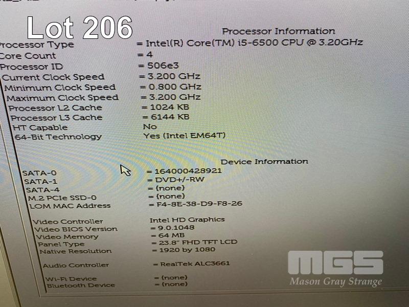ALL-IN-ONE PC, DELL OPTIPLEX 7440, CORE i5 6500 (6TH GEN) @ 3.2GHz, 8GB DDR4 RAM, 256GB SSD, DVD-RW, INBUILT 23.8" FHD WIDESCREEN (1920x1080), INTEL HD VIDEO, WEBCAM, 8 x USB, WINDOWS 10 HOME INSTALLED, KEYBOARD & MOUSE S/N:9JXXKG2