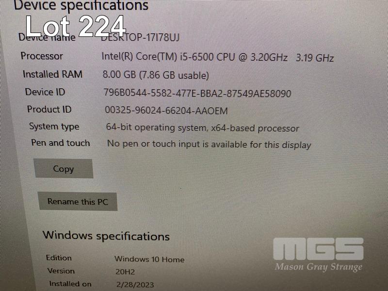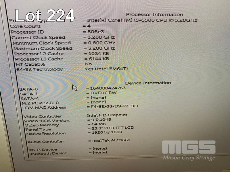 ALL-IN-ONE PC, DELL OPTIPLEX 7440, CORE i5 6500 (6TH GEN) @ 3.2GHz, 8GB DDR4 RAM, 256GB SSD, DVD-RW, INBUILT 23.8" FHD WIDESCREEN (1920x1080), INTEL HD VIDEO, WEBCAM, 8 x USB, WINDOWS 10 HOME INSTALLED, KEYBOARD & MOUSE S/N:9JW0LG2