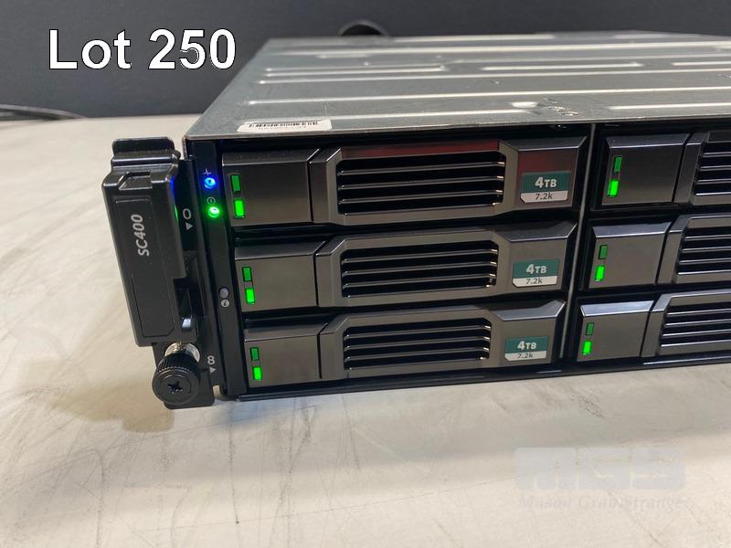 RACKMOUNT STORAGE ARRAY, DELL EMC SC400, 2U, 12 x 4TB SAS (12Gbps) HDD, 2 x 12G-SAS-4 4-PORT 12Gb SAS CONTROLLERS (02X93X), 2 x PSU WITH RAILS (NO CABLES) S/N:J7P3TR2