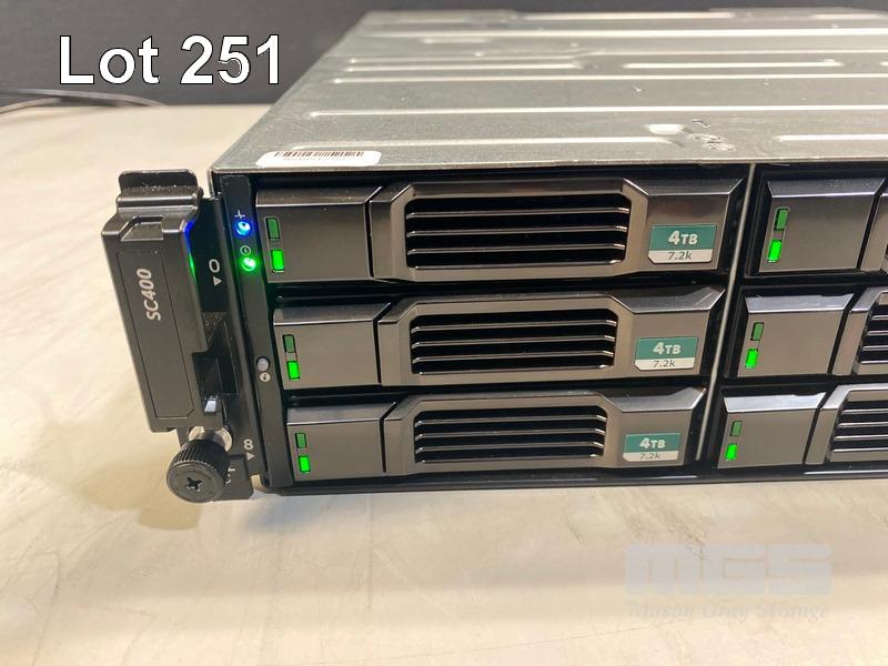 RACKMOUNT STORAGE ARRAY, DELL EMC SC400, 2U, 12 x 4TB SAS (12Gbps) HDD, 2 x 12G-SAS-4 4-PORT 12Gb SAS CONTROLLERS (02X93X), 2 x PSU WITH RAILS (NO CABLES) S/N:J7L0TR2