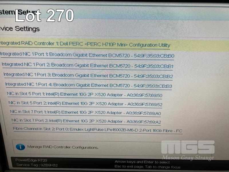 RACKMOUNT SERVER, DELL POWEREDGE R720, 2U, 2 x XEON E5-2650L v2 @ 1.7GHz, 256GB ECC DDR3 RAM, 4 x 300GB SAS HDD, DVD-ROM, 2 x DUAL-PORT 10GbE SFP ADAPTERS (0XYT17), 2 x DUAL-PORT FIBRE ADAPTERS (06VK2R), 2 x 750W PSU WITH RAILS (NO CABLES) S/N:9ZB9H32