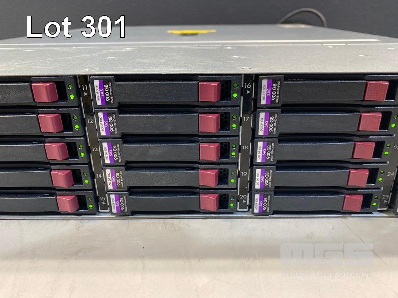 RACKMOUNT STORAGE ARRAY, HP STORAGEWORKS D2700 (AJ94A1), 25 x 900GB SAS HDD, 2 x SAS CONTROLLERS, 2 x PSU (NO CABLES) S/N:5C7329P1UC