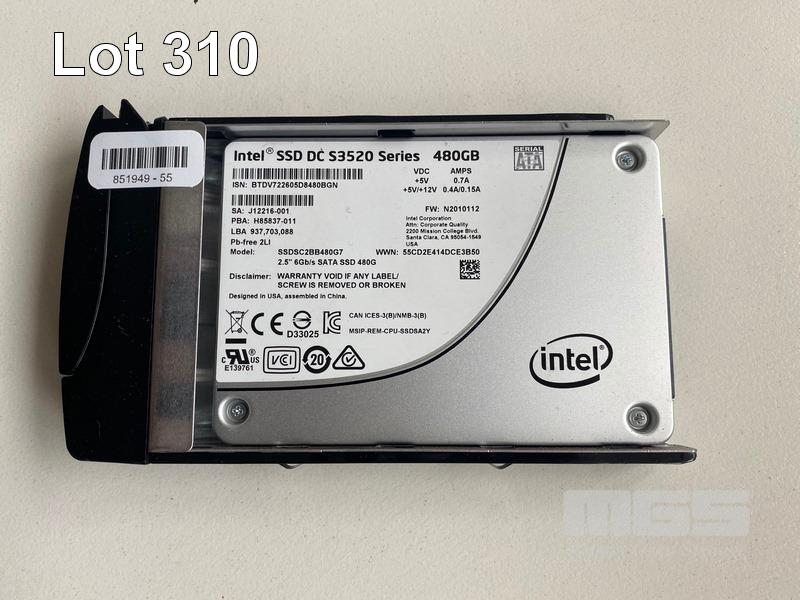 5 x INTEL 480GB SOLID STATE DRIVES, DC S3520 SERIES, SATA, 2.5" WITH CADDIES