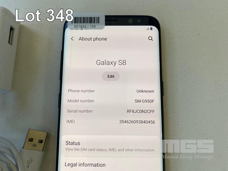 SAMSUNG GALAXY S8 SMARTPHONE, MODEL SM-G950F, 64GB WITH USB-C CHARGER (NOTE: SMALL SCRATCHES ON SCREEN) S/N:RF8JCON2CFF