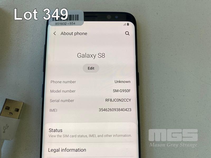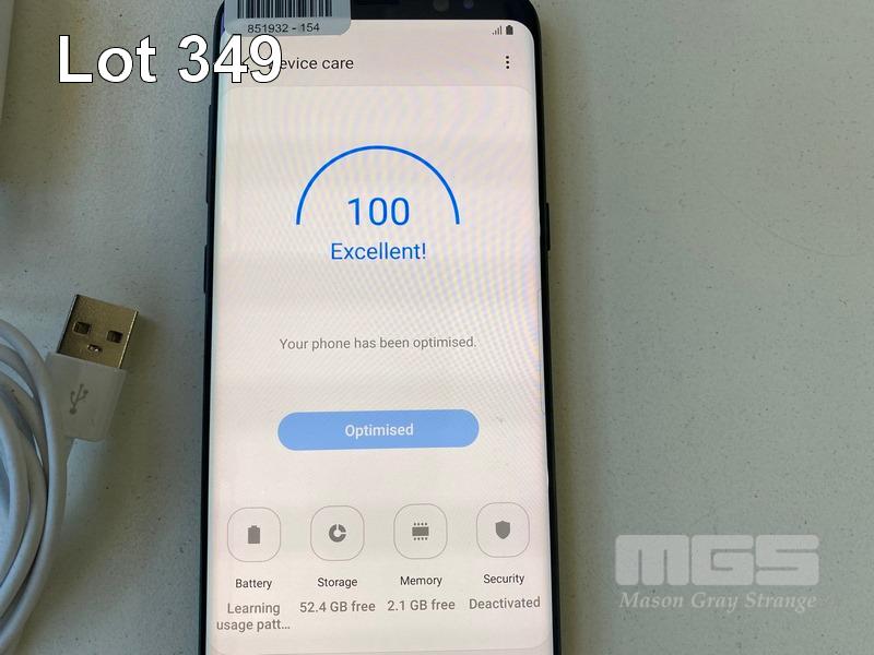 SAMSUNG GALAXY S8 SMARTPHONE, MODEL SM-G950F, 64GB WITH USB-C CHARGER (NOTE: SMALL SCRATCHES ON SCREEN) S/N:RF8JC0N2CCY
