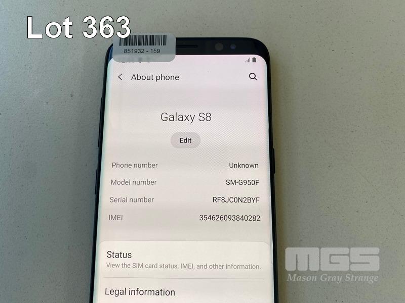 SAMSUNG GALAXY S8 SMARTPHONE, MODEL SM-G950F, 64GB (NO CABLE, NO CHARGER) (NOTE: SMALL SCRATCHES ON SCREEN) S/N:RF8JC0N2BYF