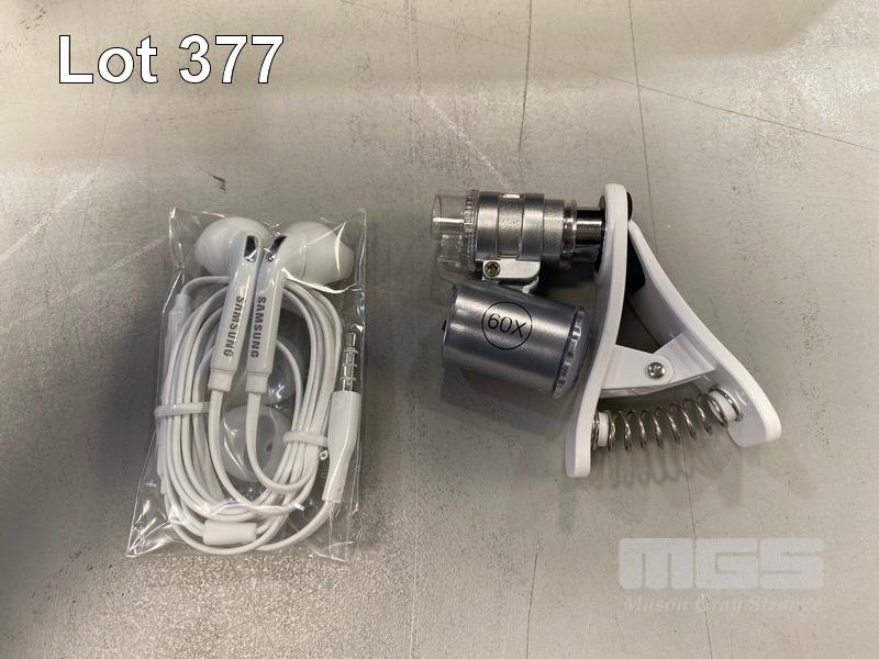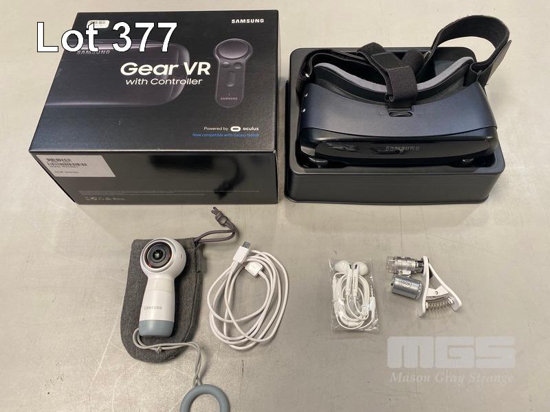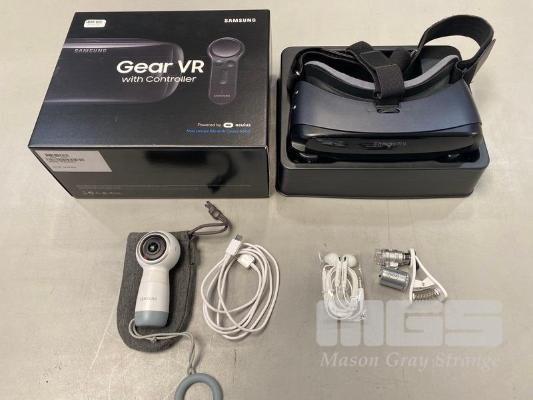 SAMSUNG GEAR VR WITH CONTROLLER, SAMSUNG GEAR 360 CAMERA WITH USB-C CABLE, SAMSUNG 3.5mm EARPHONES, CLIP-ON MAGNIFYING GLASS FOR SMARTPHONE