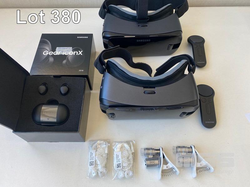 2 x SAMSUNG GEAR VRs WITH CONTROLLERS, 1 x SAMSUNG GEAR ICONX CORD-FREE FITNESS EARBUDS, 2 x CLIP-ON MAGNIFYING GLASS FOR SMARTPHONE, 2 x SAMSUNG 3.5mm EARPHONES