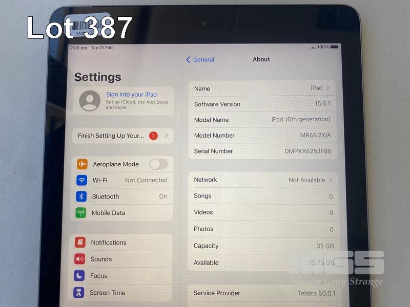 APPLE iPAD (6TH GEN), 32GB, Wi-Fi, CELLULAR, SPACE GREY, MODEL A1954 (NO CABLE, NO CHARGER) (NOTE: SCRATCHES ON CASING) S/N:DMPXX625JF88