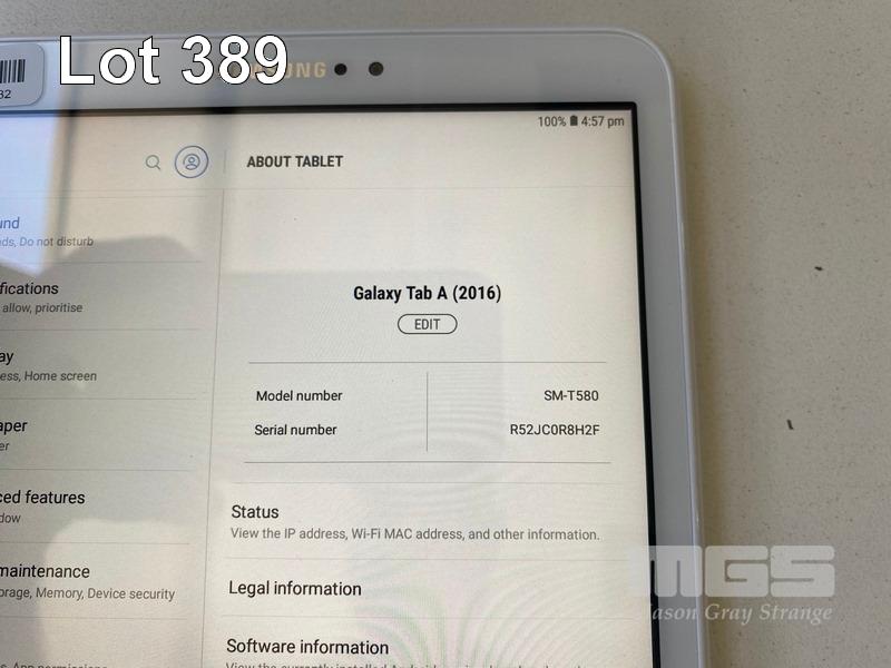 TABLET PC, SAMSUNG GALAXY TAB A, MODEL SM-T580, 16GB, Wi-Fi, 10.1" SCREEN WITH CABLE & CHARGER S/N:R52JC0R8H2F