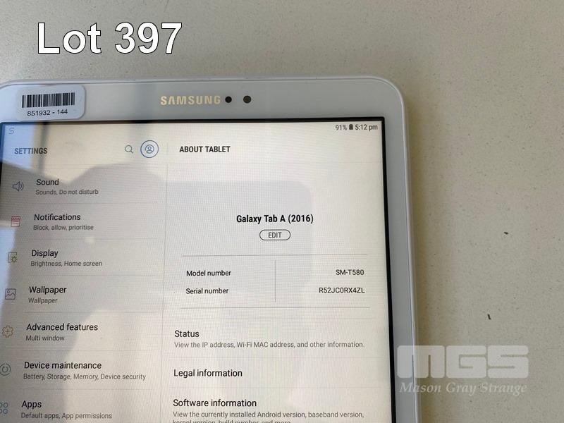 TABLET PC, SAMSUNG GALAXY TAB A, MODEL SM-T580, 16GB, Wi-Fi, 10.1" SCREEN WITH CABLE & CHARGER S/N:R52JC0RX4ZL