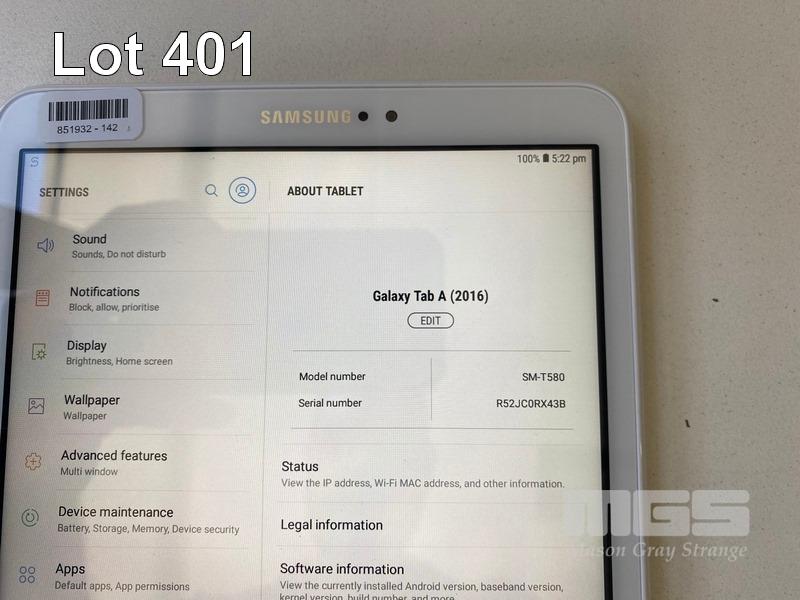 TABLET PC, SAMSUNG GALAXY TAB A, MODEL SM-T580, 16GB, Wi-Fi, 10.1" SCREEN WITH CABLE & CHARGER S/N:R52JC0RX43B
