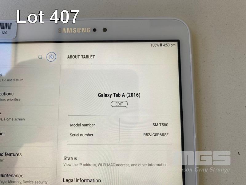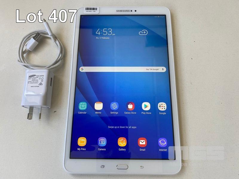 TABLET PC, SAMSUNG GALAXY TAB A, MODEL SM-T580, 16GB, Wi-Fi, 10.1" SCREEN WITH CABLE & CHARGER S/N:R52JC0R8RSF