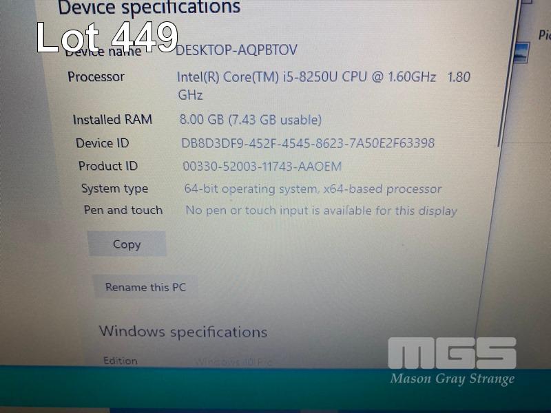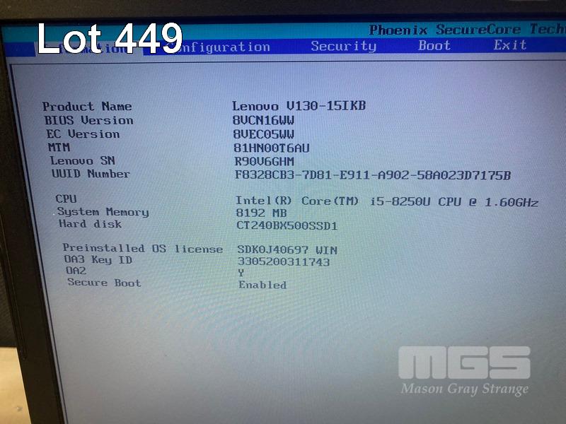 LAPTOP, LENOVO V130-15IKB, CORE i5 8250U (8TH GEN) @ 1.6GHz, 8GB DDR4 RAM, 240GB SSD, 15.6" WIDESCREEN (1366x768), Wi-Fi, BLUETOOTH, WINDOWS 10 PRO INSTALLED & POWER SUPPLY (NOTE: MINOR MARKS ON SCREEN) S/N:R90V6GHM