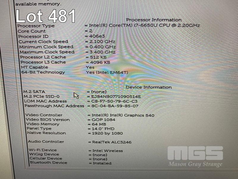 LAPTOP, DELL LATITUDE 7480, CORE i7 6650U (6TH GEN) @ 2.2GHz, 16GB DDR4 RAM, 512GB NVMe M.2 SSD, 14" WIDESCREEN (1920x1080), INTEL IRIS GRAPHICS 540, Wi-Fi, BLUETOOTH, WINDOWS 10 PRO INSTALLED & POWER SUPPLY S/N:D5J5RV2