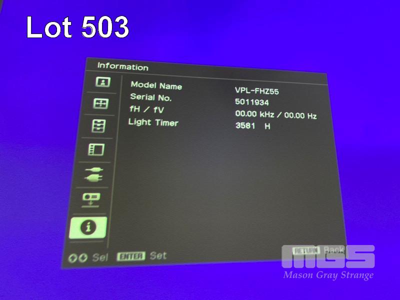 LASER PROJECTOR, SONY VPL-FHZ55 WUXGA 3LCD, 4,000 LUMENS, HDMI INPUT, 3,581 HOURS SHOWING WITH REMOTE S/N:5011934