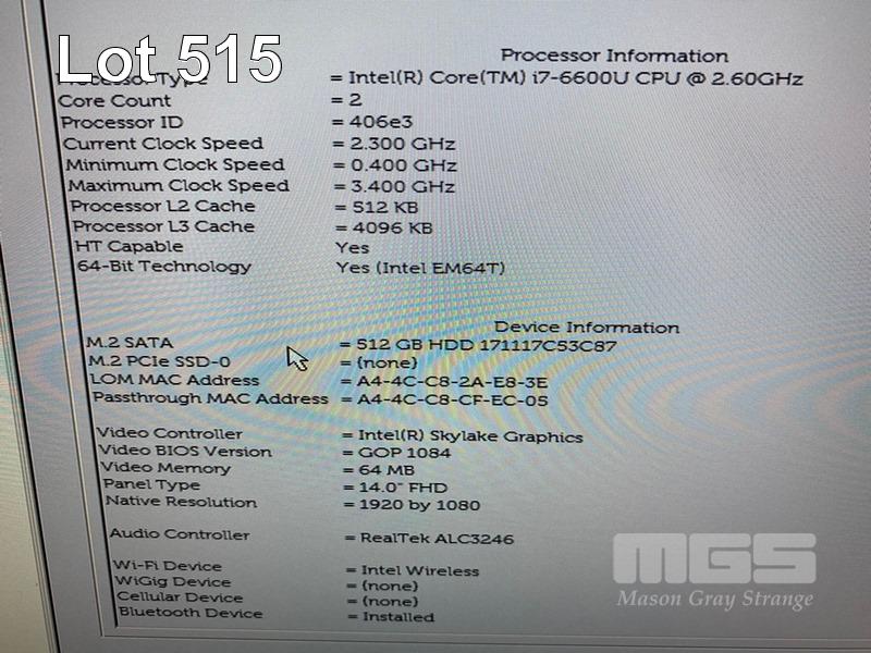 LAPTOP, DELL LATITUDE 7480, CORE i7 6600U (6TH GEN) @ 2.6GHz, 16GB DDR4 RAM, 512GB M.2 SSD, 14" WIDESCREEN (1920x1080), INTEL SKYLAKE GRAPHICS, Wi-Fi, BLUETOOTH, WINDOWS 10 HOME INSTALLED & POWER SUPPLY S/N:D2PN9H2