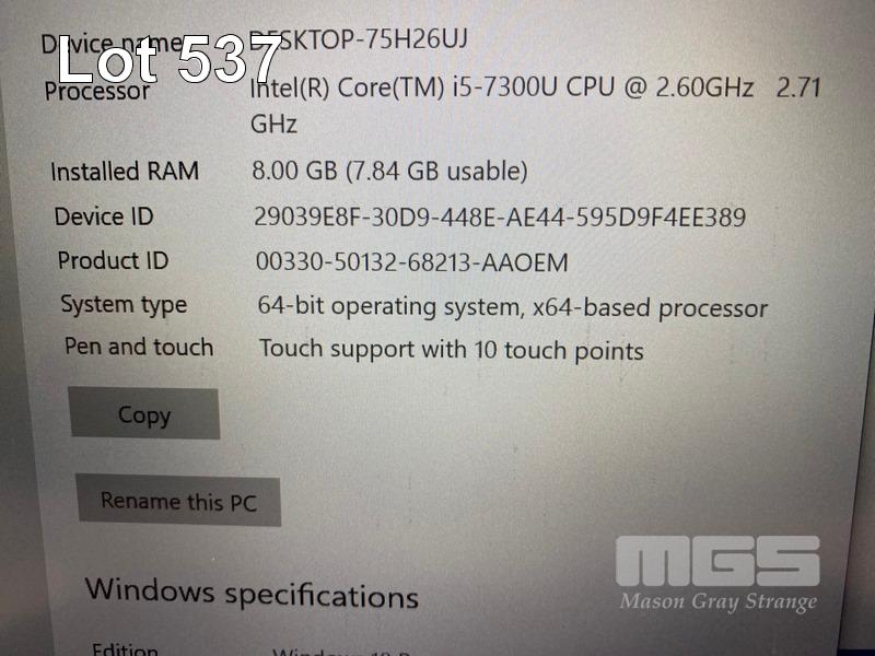 LAPTOP, LENOVO THINKPAD T470s, TYPE 20HG, CORE i5 7300U (7TH GEN) @ 2.6GHz, 8GB DDR4 RAM, 256GB NVMe M.2 SSD, 14" TOUCHSCREEN (1920x1080), INTEL HD VIDEO, Wi-Fi, BLUETOOTH, WINDOWS 10 PRO INSTALLED & POWER SUPPLY (NOTE: MARKS ON SCREEN) S/N:PC0SS7RL