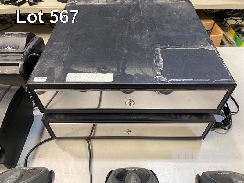 2 x POS CASH CRAWERS (NO KEYS), 4 x USB HANDHELD BARCODE SCANNERS, 4 x DOCKET PRINTERS