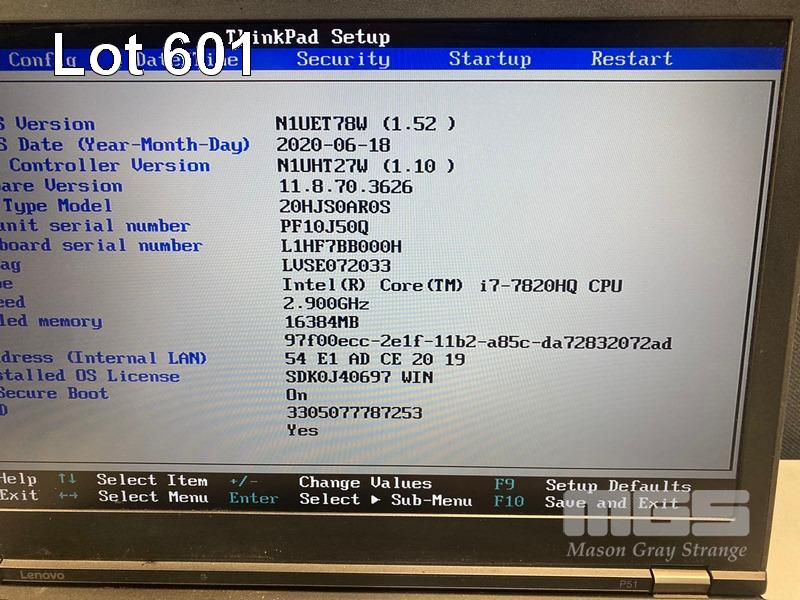 LAPTOP, LENOVO THINKPAD P51 MOBILE WORKSTATION, TYPE 20HJ, CORE i7 7820HQ (7TH GEN) @ 2.9GHz, 16GB DDR4 RAM, 512GB NVMe M.2 SSD, 15.6" WIDESCREEN (1920x1080), 4GB NVIDIA QUADRO M2200 VIDEO, Wi-Fi, BLUETOOTH, WINDOWS 10 PRO INSTALLED & POWER SUPPLY (NOTE: MINOR MARKS ON SCREEN, SMALL CRACK LINE ON CASING RHS) S/N:PF10J50Q