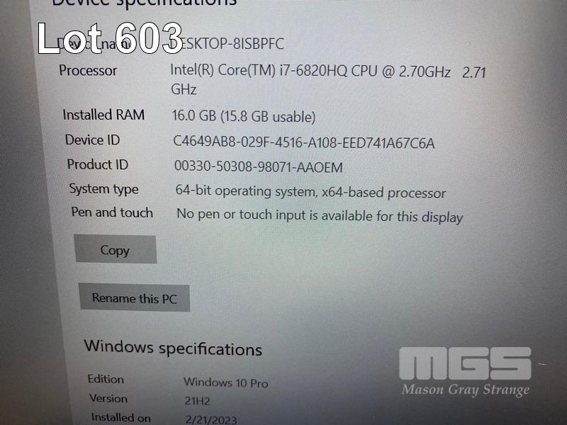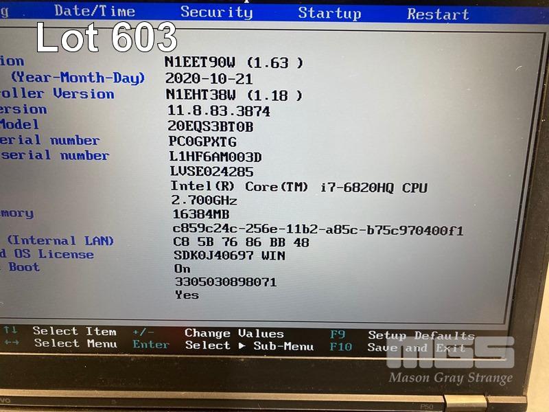 LAPTOP, LENOVO THINKPAD P50 MOBILE WORKSTATION, TYPE 20EQ, CORE i7 6820HQ (6TH GEN) @ 2.7GHz, 16GB DDR4 RAM, 256GB M.2 SSD, 15.6" WIDESCREEN (1920x1080), 4GB NVIDIA QUADRO M2000M VIDEO, Wi-Fi, BLUETOOTH, WINDOWS 10 PRO INSTALLED & POWER SUPPLY (NOTE: MINOR MARKS ON SCREEN) S/N:PC0GPXTG